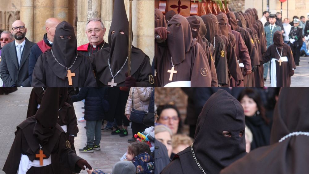 El frío acompañó el nuevo recorrido de la procesión que se estrenaba desde el patio de Las Clarisas. Desde allí partieron hacia la plaza de Regla, donde a los pies de la Catedral se ha llevado a cabo el acto en el que E.G.S., que cuenta con delitos menores, ha obtenido la libertad condicional habilitada por el Juzgado de Vigilancia Penitenciaria de León.