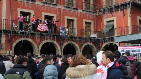 El ambiente, aunque festivo, se mantuvo respetuoso, ya que ambas aficiones mantienen una buena relación, como quedó plasmado en el duelo de ida, donde ambos seguidores disfrutaron juntos de la previa del choque que terminó con un 1-0 para el equipo gijonés.