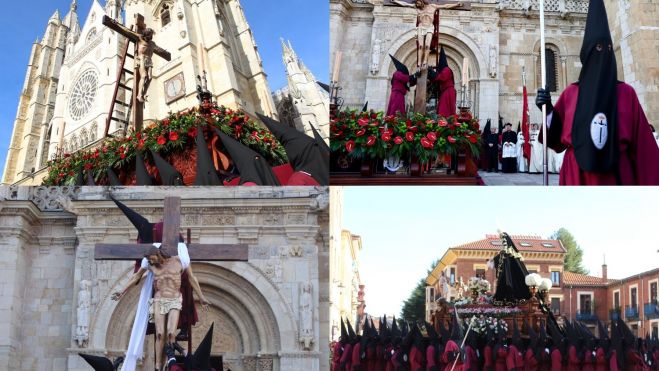 Tras dos años marcados por las lluvias durante la Semana Santa, la Procesión del Santo Cristo del Desenclavo ha vuelto a recorrer las calles de León, la Cofradía ha recuperado así el acto más significativo del Sábado Santo. Aquí te dejamos todas las fotos.