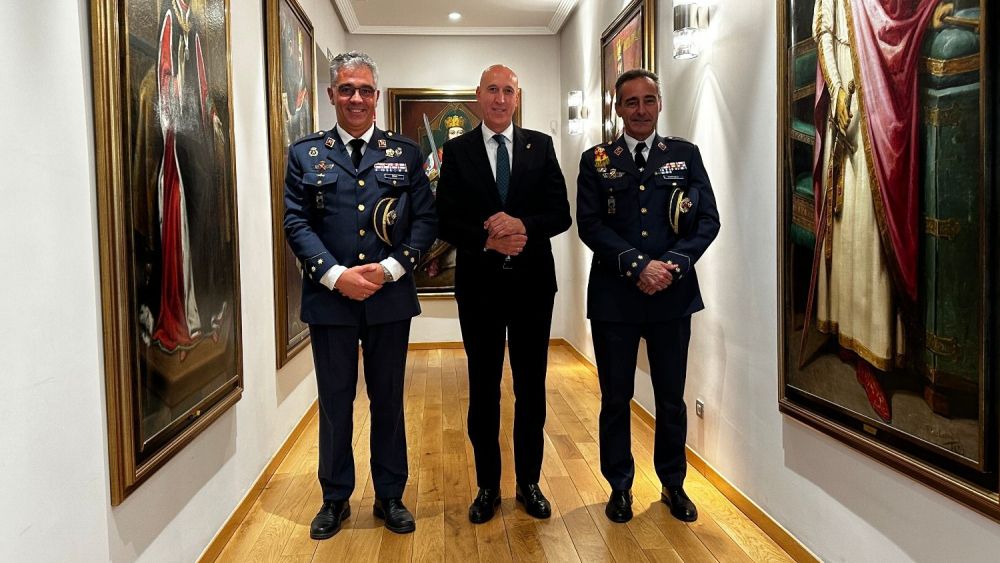 El alcalde de León, José Antonio Diez, ha recibido este miércoles en el Consistorio de San Marcelo al coronel director de la Academia Básica del Aire y del Espacio, Ignacio Dompablo Ferrándiz, y a quien tomará su relevo en este cargo, Óscar Ruiz González.
