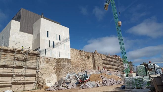 Así, se lleva a cabo el recalce en las zonas donde el lienzo no dispone de un asiento fiable, la eliminación de la vegetación, la reposición de las lagunas en el paramento, la reconstrucción de los cubos, previa exhumación de sus bases, para mejorar notablemente la estabilidad general de la muralla y también de la fábrica entre el Teatro Gullón y La Brecha y el rejuntado de la fábrica de mampostería, además de la reposición de elementos de coronación y eliminación de añadidos impropios y la adecuación del adarve y canalización de las aguas.