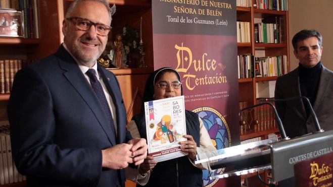 La feria de repostería ‘Dulce Tentación’, que se celebrará en las Cortes de Castilla y León este fin de semana, del 12 al 14 de diciembre, contará en esta ocasión con la participación de una veintena de conventos y monasterios de la Comunidad, según detallaron hoy el presidente de las Cortes, Carlos Pollán, y el director de la Fundación de Castilla y León, Juan Zapatero, durante la presentación del evento, que este año tuvo lugar en el Monasterio de Nuestra Señora de Belén, en Toral de los Guzmanes (León).
