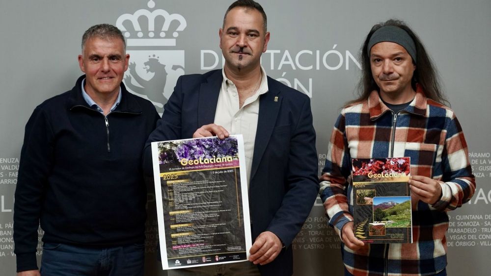 El diputado de Cultura, Arte y Patrimonio de la Diputación de León, Emilio Martínez, acompañó en el día de hoy a los organizadores de las VII Jornadas Geolaciana en su presentación, en la que celebró su objetivo de “fomentar la educación en geología, favorecer la investigación y divulgación y poner en valor estos recursos en las comarcas de la provincia”, donde existen “más de un centenar lugares interés geológico”.
