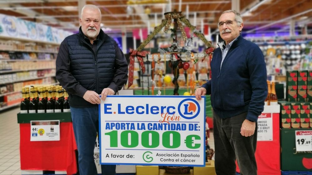 La empresa E-leclerc ha demostrado una vez más su solidaridad y compromiso con los pacientes de cáncer y sus familias en León, pues ha acabado el 2024 realizando una donación de 1.000 euros que pone broche y se suma a las campañas que durante este año ha realizado en sus establecimientos a beneficio de la Asociación Española Contra el Cáncer en León, con el objetivo de recaudar fondos destinados a la investigación oncológica y a contribuir en la financiación de los servicios gratuitos que la Asociación ofrece en la provincia.