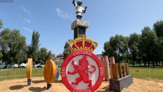 El Ayuntamiento de León ha mostrado este viernes la hoguera para la noche de San Juan uno de los dos días grandes de las fiestas de la capital. Como protagonistas se han elegido a la Cultural y Deportiva Leonesa, los deportes autóctonos y los inclusivos.