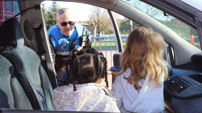Como broche de oro a las XIII Jornadas de Educación Vial, los niños han recibido la visita de agentes de la Policía Local de San Andrés del Rabanedo. Los agentes han mostrado a los pequeños algunos de los materiales que utilizan en su trabajo diario, como conos, chalecos reflectantes y walkie-talkies. Además, han permitido a los niños subirse a los coches patrulla y activar las sirenas, despertando en ellos una gran ilusión y entusiasmo.