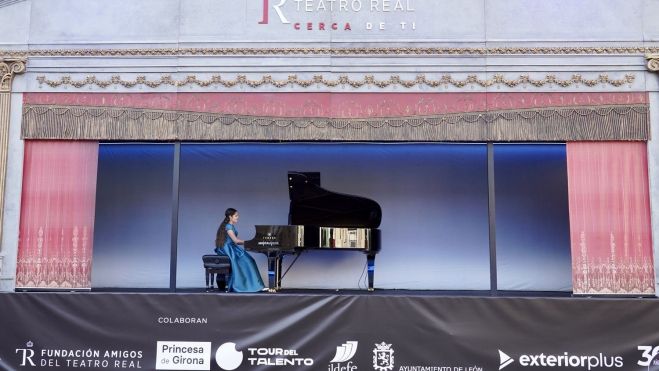 El escenario itinerante del Teatro Real de Madrid, ‘La Carroza del Teatro Real’, llegó este martes a la Plaza de San Marcelo de León, donde ofreció un recital de piezas populares de ópera y zarzuela con los jóvenes talentos del programa Crescendo