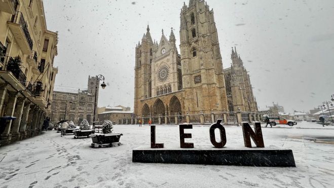 La ciudad de León ha vuelto a vivir este miércoles bajo una nevada como consecuencia de la llegada de la borrasca Kristin, que además de dejar postales invernales en León capital y provincia, mantiene activados avisos meteorológicos por nevadas y frío intenso.