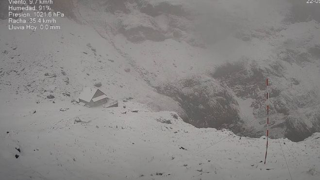 La nieve ha despedido, la madrugada de este lunes, el verano y ha dado entrada al otoño en la vertiente leonesa de los Picos de Europa. La webcam del refugio de Collado Jermoso en Posada de Valdeón ha captado imágenes más propias del invierno.