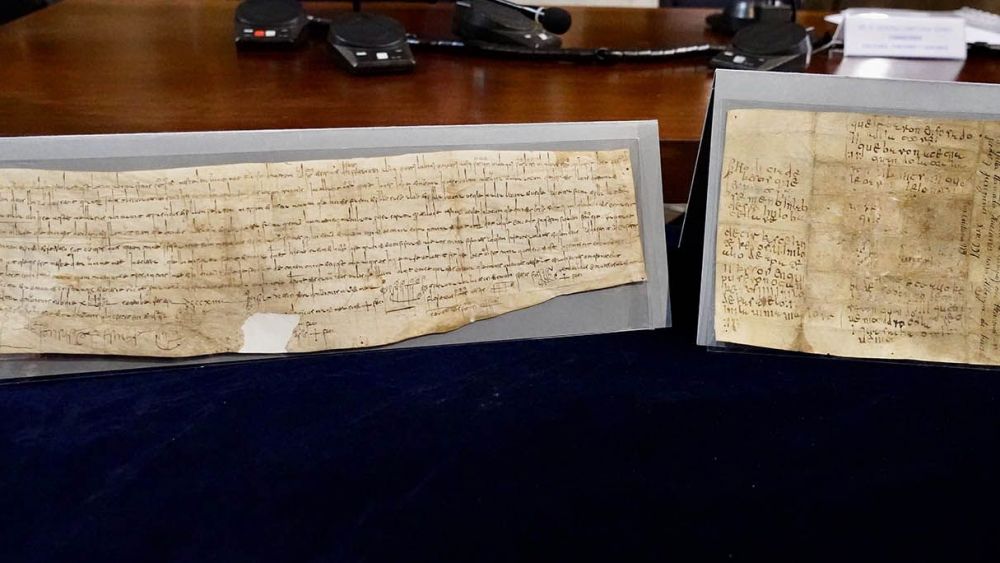 “Vuelven a su casa”, subrayó antes de comentar algún detalle de los documentos. La Nodicia de Kesos (año 959) es uno de los vestigios más reconocidos de las lenguas romances del que mencionó su “latinismo y leonesismo acusado” la Donación del rey Silo (año 775) está considerado como el más antiguo del reino de Asturias.