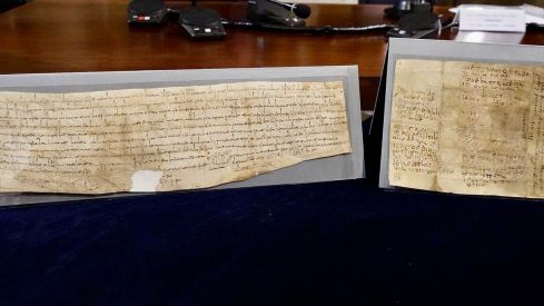 El consejero de Cultura, Turismo y Deporte, Gonzalo Santonja, entregó este martes al Cabildo Catedralicio de León los documentos Nodicia de Kesos (959) y la Donación del rey Silo, después de la intervención llevada a cabo en el Centro de Conservación y Restauración de Bienes Culturales de Castilla y León ubicado en Simancas (Valladolid). Ambos regresan así al Archivo de la Pulchra Leonina, que Santonja describió como “el sanctasanctórum del idioma español en sus orígenes” y el archivo Altomedieval más importante.
