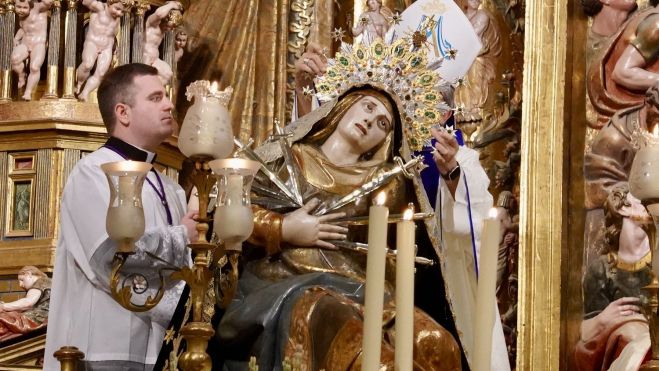 El arzobispo de Valladolid y presidente de la Conferencia Episcopal, Luis Argüello, fue el encargado de presidir la misa pontifical, que culminó con el rito de la coronación tras un septenario con gran asistencia de devotos de la Dolorosa. La parte musical de la eucaristía corrió a cargo de la Coral Excelsior, dirigida por Milagros Alonso, el grupo de metales de Abraham González y varios músicos bajo la batuta de Miguel Ángel Rodríguez Villacorta.