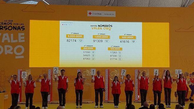 El primer premio, dotado con 3 millones de euros, ha correspondido al número 82.174 de la serie 074 y ha sido vendido en Barcelona. El segundo premio, de 1 millón de euros, ha recaído en el número 91.309 de la serie 007. El tercer premio, con una dotación de 500.000 euros, ha sido para el número 41.616 de la serie 086.