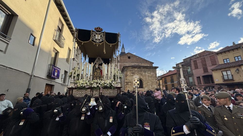 Las nubes respetaron este acto, uno de los más antiguos de la Semana Santa leonesa, permitiendo que las nueve imágenes saliesen por la capital para vivir una cita en la que no faltó la emoción y la devoción.