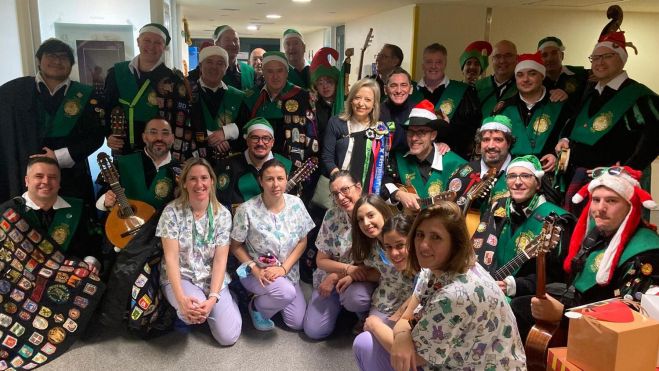 La Tuna de la Universidad de León, con el apoyo de su madrina, la doctora Elena Bollo de Miguel, directora médica del Complejo Asistencial Universitario de León (Caule), acudió hoy a su cita anual con los más pequeños, rondando y llevando unos detalles a todos los niños ingresados en el Hospital de León, junto al personal de Pediatría y a voluntarios del centro, que contribuyeron a la organización del evento.