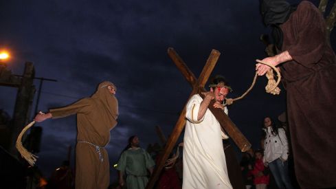 Ya por la tarde, los miles de personas que acuden cada año a presenciar el Viacrucis -sobre 4.000 o 5.000 asistentes según las cifras aportadas por Félix Miguélez, comenzarán a concentrarse en la plaza del pueblo, donde, a las 20 horas y sobre un “enorme escenario”, comenzará la recreación, en la que participan un centenar de vecinos, “con la escena en la que María Magdalena se arrepiente ante Jesús de la vida que lleva y en la que también aparecerá Judas, que no ve bien que Jesús la perdone”.